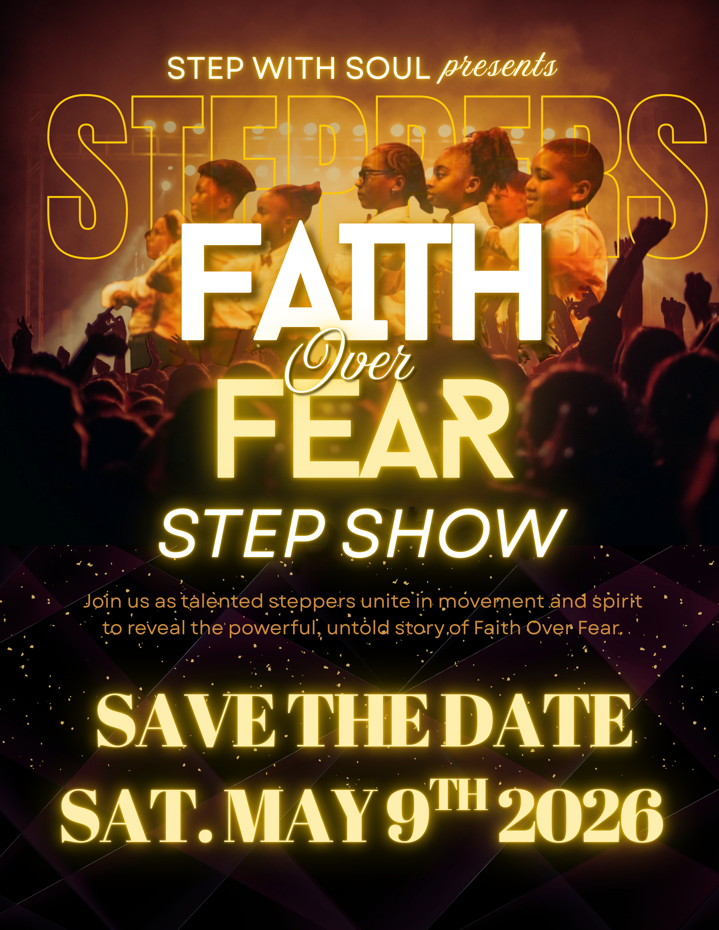 GET READY FOR AN UNFORGETTABLE EVENING. PAST AND PRESENT STEPPERS FROM STEP WITH SOUL MINISTRIES UNITE FOR ONE REMARKABLE NIGHT OF FELLOWSHIP, MUSIC, AND SPIRIT. DON’T MISS THIS POWERFUL SHOW. SECURE YOUR TICKETS TODAY!